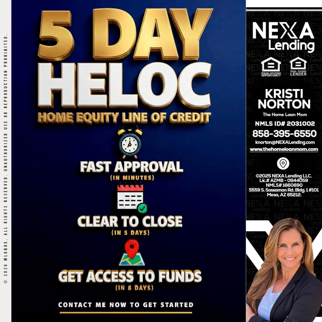 5 day hello - Kristi Norton -The Home Loan MomHi, my name is Kristi Norton. I’m a Loan Officer with NEXA Lending LLC., offering personalized mortgage solutions, fast customized quotes, great rates and service with integrity.